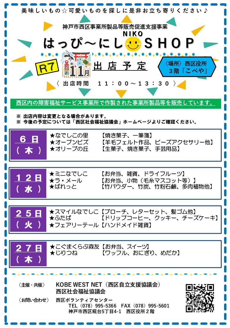 「はっぴ~にしNIKOSHOP」R7.11月のお知らせ