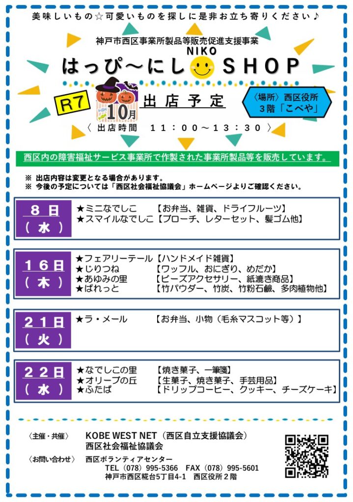 「はっぴ~にしNIKOSHOP」R7.10月のお知らせ