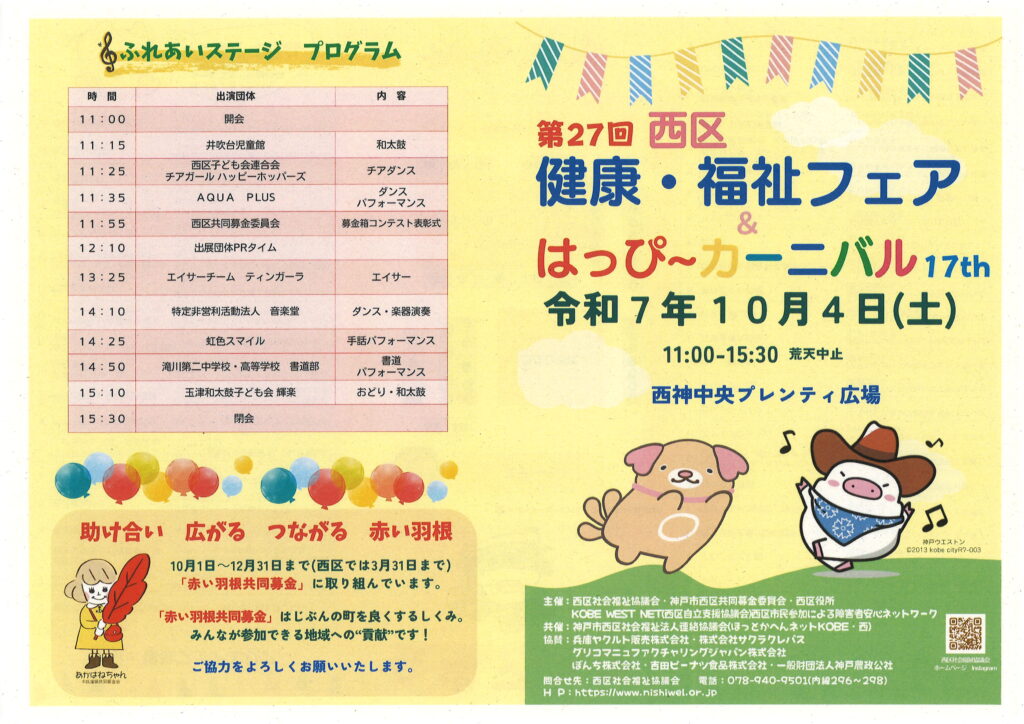 令和7年10月4日(土)「第27回 西区健康・福祉フェア&はっぴ~カーニバル 17th」を開催いたします。