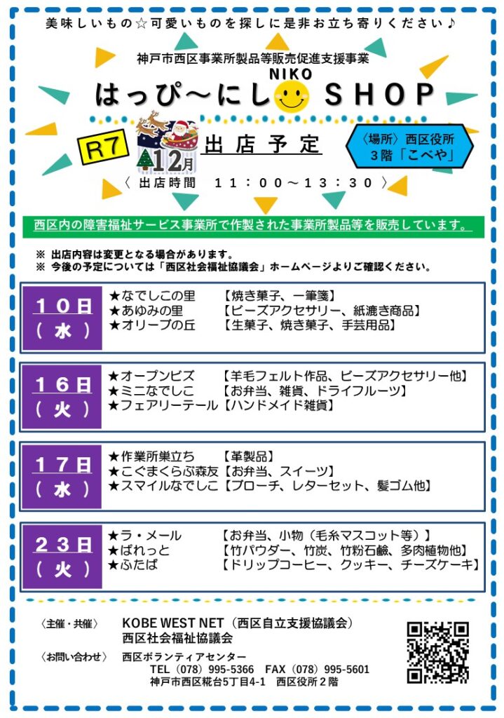 「はっぴ~にしNIKOSHOP」R7.12月のお知らせ