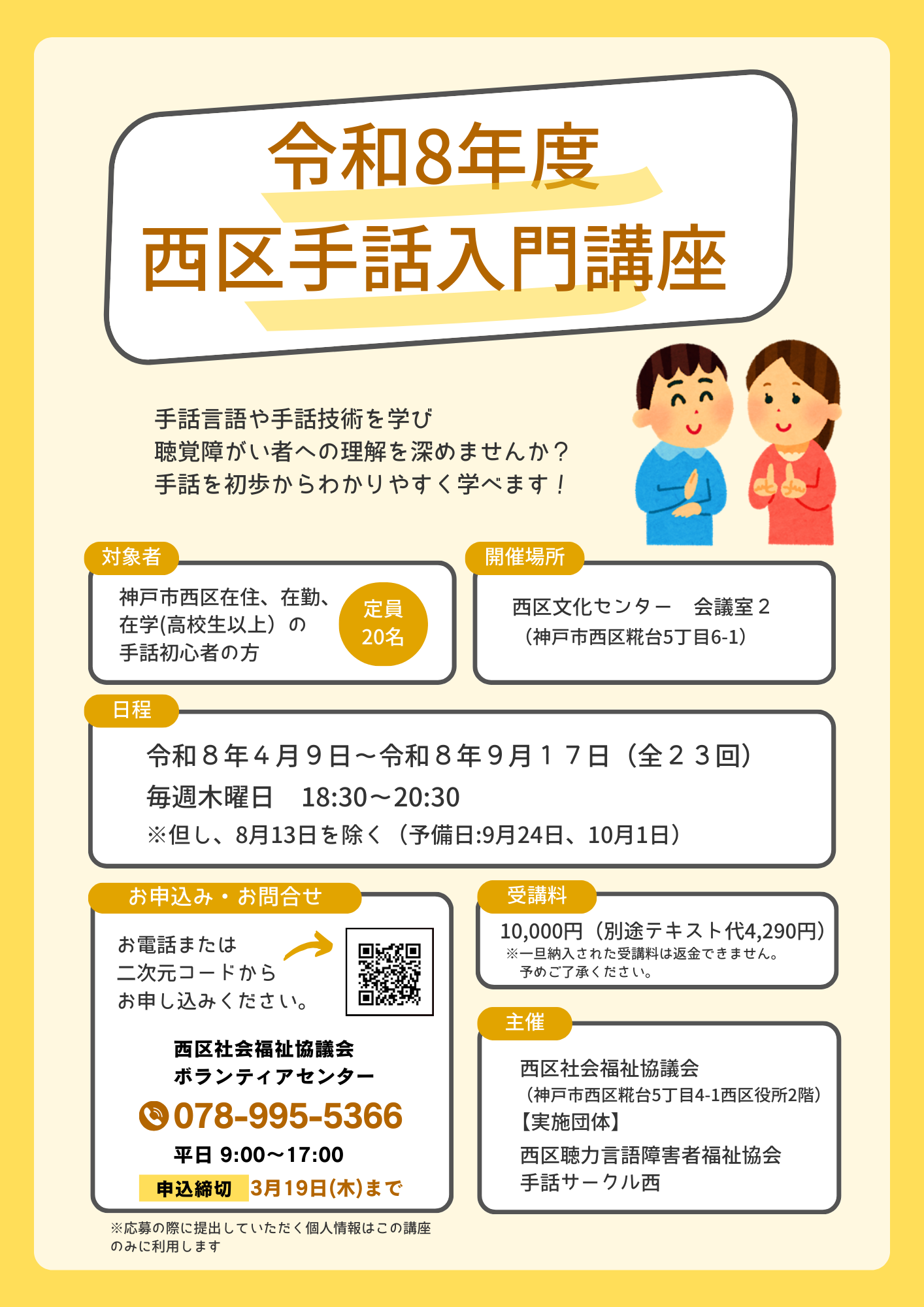 <令和8年度西区手話入門講座 受講生募集!>